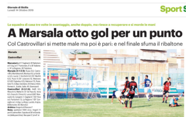 L'edizione odierna del "Giornale di Sicilia" si sofferma sul pareggio pirotecnico tra Marsala e Castrovillari. Al "Lombardo-Angotta" termina 4-4, con...