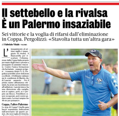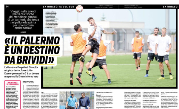 L'edizione odierna del "Corriere dello Sport" riporta le dichiarazioni di Rosario Pergolizzi, allenatore del Palermo, rilasciate al noto giornalista Alfredo...