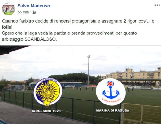 Salvo Mancuso, giocatore del Marina di Ragusa si è lamentato dell'arbitraggio che ha subito la squadra siciliana contro il Giugliano,...