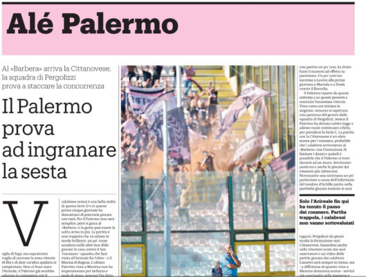 L'edizione odierna de "La Repubblica" analizza la preparazione del Palermo in vista della gara interna contro la Cittanovese. La squadra...