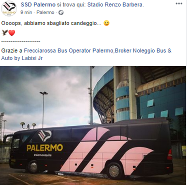 Attraverso i propri canali i social, il Palermo ironizza sui colori del nuovo pullman ufficiale. Ecco il post: