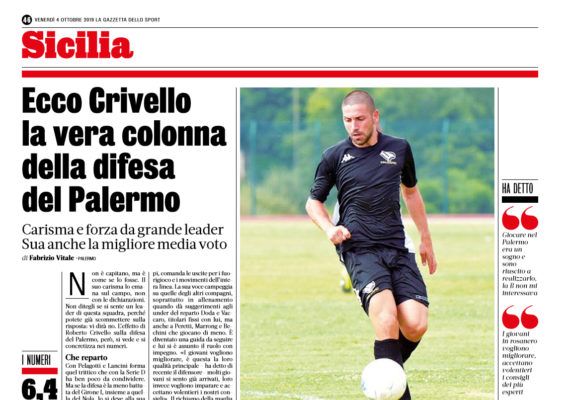 L'edizione odierna della "Gazzetta dello Sport" esalta le prestazioni di Roberto Crivello, difensore del Palermo. Non è capitano, ma è...