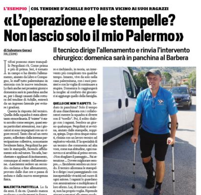 L'edizione odierna del "Corriere dello Sport" parla della voglia di Pergolizzi di non abbandonare i suoi ragazzi nonostante il problema...