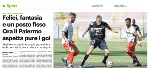 L'edizione odierna del "Giornale di Sicilia" parla del classe 2001 del Palermo Mattia Felici, ormai perno inamovibile nello scacchiere di...