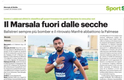 L'edizione odierna del "Giornale di Sicilia" si sofferma sulla vittoria del Marsala contro la Palmese. Gli azzurri si impongono 2-0...
