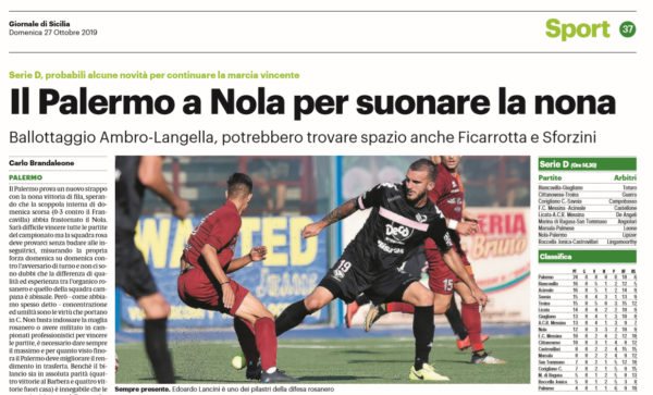 A caccia del nono successo di fila. A riportarlo è l'edizione odierna de "Il Giornale di Sicilia". Sarà difficile vincere...