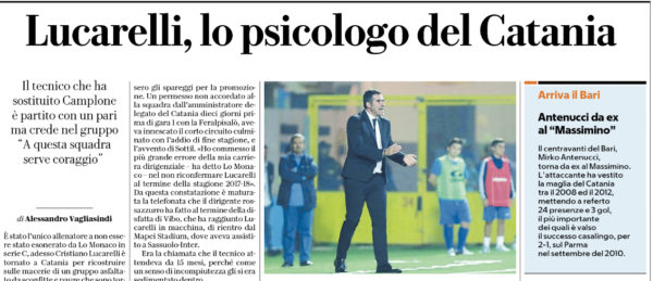 L'edizione odierna de "La Repubblica" riporta le dichiarazioni di Cristiano Lucarelli, tecnico del Catania: «Ci vuole coraggio – dice Lucarelli,...
