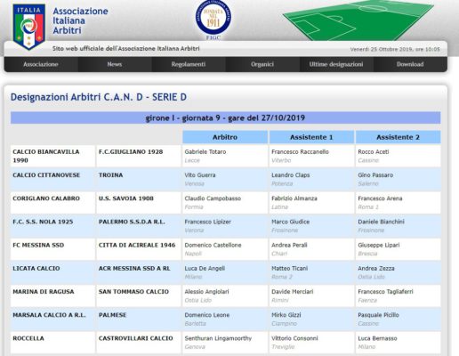 Sono state rese note le designazioni arbitrali valide per la nona giornata del girone I di serie D. Nola-Palermo è...