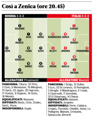 L'edizione odierna della "Gazzetta dello Sport" si sofferma sulle probabili formazioni di Bosnia-Italia. Azzurri tranquilli per via della qualificazione. Stasera...