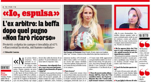 L'edizione odierna della "Gazzetta dello Sport"si sofferma su Elena Proietti, assessore allo Sport di Terni (eletta nel 2018 in quota FdI)...