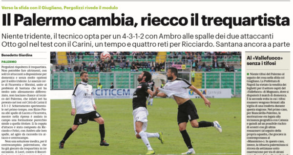 L'edizione odierna del "Giornale di Sicilia" si sofferma sulla probabile formazione del Palermo in vista della gara di Giugliano. Pergolizzi...
