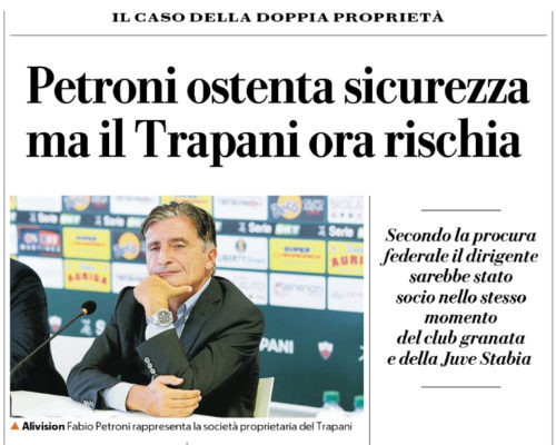 L'edizione odierna de "La Repubblica" si sofferma sulla situazione del Trapani. In punta di diritto, se venisse confermata l’ipotesi di deferimento,...