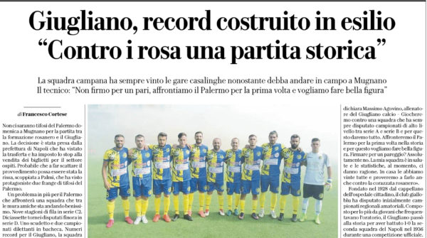 L'edizione odierna de "La Repubblica" si sofferma sulla sfida tra Giugliano e Palermo. I rosanero non saranno accompagnati dai tifosi...