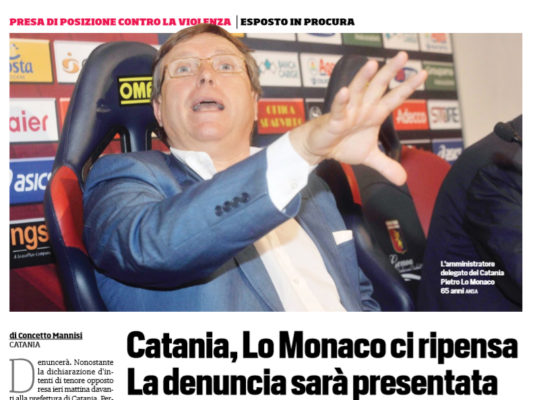 Corriere dello Sport: “Catania, Lo Monaco ci ripensa. La denuncia sarà presentata”