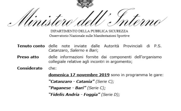 Attraverso un comunicato stampa, l’Osservatorio Nazionale sulle Manifestazioni Sportive ha reso note le decisioni in vista di tre gare in...