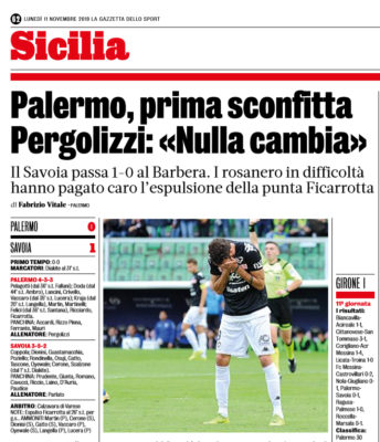 L'edizione odierna della "Gazzetta dello Sport" si sofferma sulla sconfitta del Palermo contro il Savoia. Interrotto nella sua marcia trionfale,...