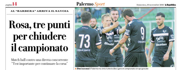 L'edizione odierna de "La Repubblica" analizza ciò che manca al Palermo: 3 punti per chiudere il campionato. Punti che potrebbero...