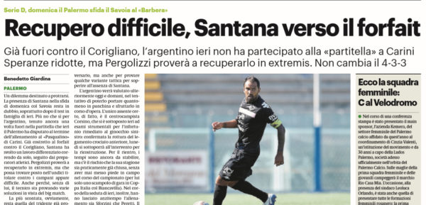 L'edizione odierna del "Giornale di Sicilia" parla delle condizioni di Mario Alberto Santana in vista del Savoia. Più no che...