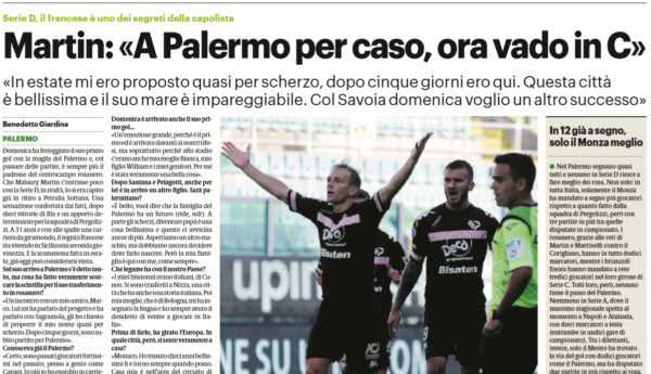 L'edizione odierna del "Giornale di Sicilia" riporta un'intervista realizzata al metronomo del Palermo, Malaury Martin. Che legame ha con il...