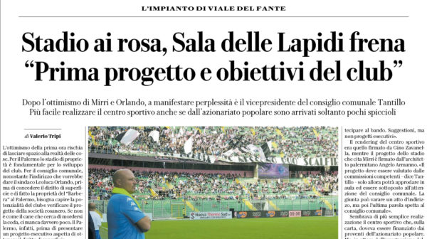 L'edizione odierna di "Repubblica" parla della questione stadio in casa Palermo. Per il consiglio comunale - si legge - prima...