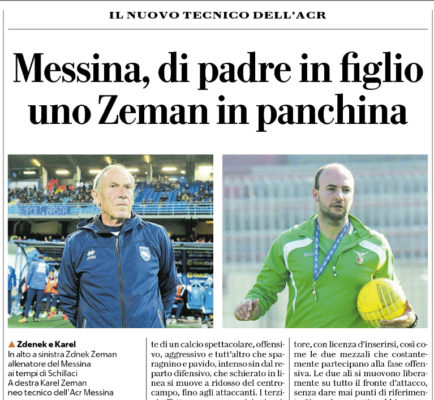 L'edizione odierna di "Repubblica" parla del nuovo allenatore dell'ACR Messina, Karel Zeman, figlio di Zdenek. Karel, 42 anni, prenderà in mano...