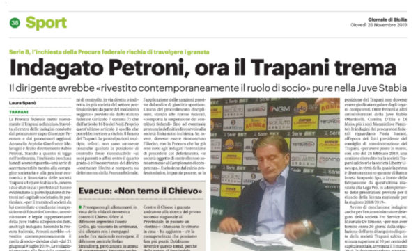 L'edizione odierna del "Giornale di Sicilia" si sofferma sulla situazione del Trapani, con Fabio Petroni finito sotto indagine. Ecco quanto...