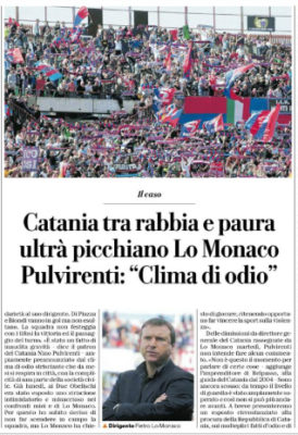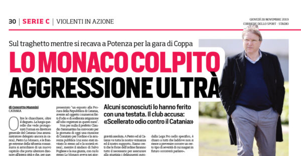 L'edizione odierna del "Corriere dello Sport" parla dell'aggressione ai danni di Pietro Lo Monaco, ormai ex direttore generale del Catania. Dopo...