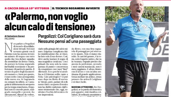 Corriere dello Sport: “Pergolizzi: «Palermo, non voglio alcun calo di tensione»”