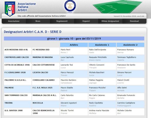 Sono state rese note le designazioni arbitrali per la decima giornata del campionato di serie D. Nel Girone I, Palermo-...