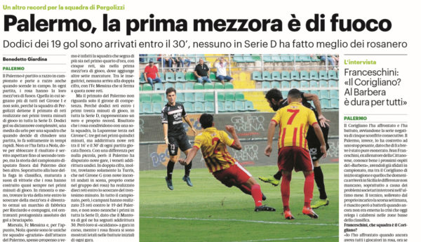 L'edizione odierna del "Giornale di Sicilia" parla di prima "mezz'ora di fuoco" per il Palermo che è partito a razzo...