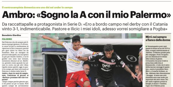 L'edizione odierna del "Giornale di Sicilia" riporta le dichiarazioni di Danilo Ambro, centrocampista del Palermo. Lo è tornato a essere dopo...