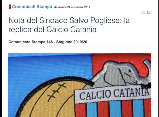 Il Catania risponde al sindaco Pogliese: “Non siamo falliti”