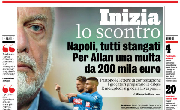L'edizione odierna della "Gazzetta dello Sport" si sofferma sul difficile momento del Napoli. De Laurentiis ha dato l'ok ai suoi...