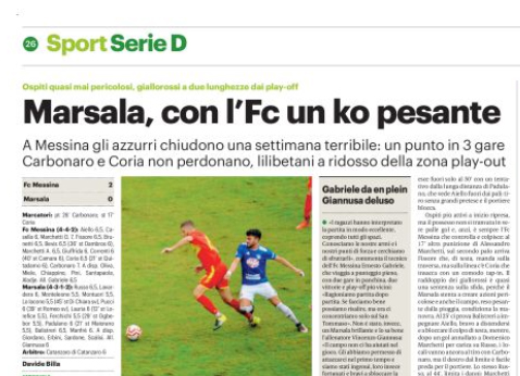 L'edizione odierna del "Giornale di Sicilia" si sofferma sulla sfida tra FC Messina e Marsala, vinta dai peloritani 2-0. Ernesto Gabriele...