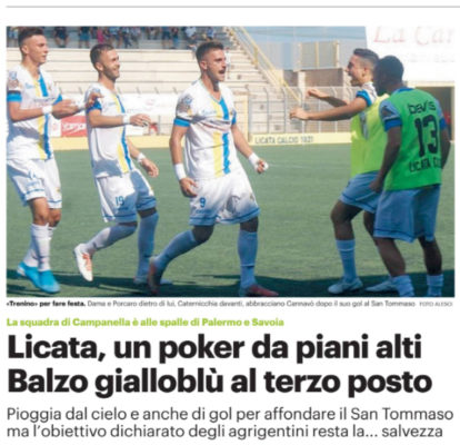 L'edizione odierna del "Giornale di Sicilia" esalta la vittoria del Licata per 4-0 contro il San Tommaso. Vittoria, la terza...