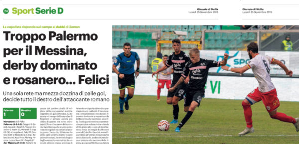 L'edizione odierna del "Giornale di Sicilia" esalta la vittoria del Palermo nel derby contro l'ACR Messina. I rosanero hanno stravinto,...