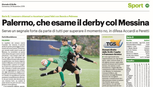L'edizione odierna del "Giornale di Sicilia" si sofferma sulla sfida tra Palermo e ACR Messina. La capolista che arranca contro...