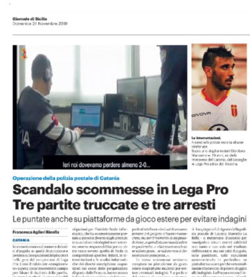 L'edizione odierna del "Giornale di Sicilia" si sofferma sullo scandalo scommesse in Lega Pro. Ecco quanto riportato: "Scommettevano sul numero...