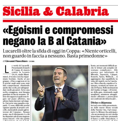 L'edizione odierna della "Gazzetta dello Sport" riporta le dichiarazioni di Cristiano Lucarelli, allenatore del Catania: «Fino a oggi non si...
