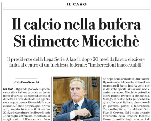 L'edizione odierna de "La Repubblica" si sofferma sulle dimissioni di Gaetano Miccichè da presidente della Lega di Serie A. Ecco quanto...