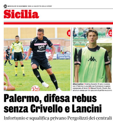 Gazzetta dello Sport: “Palermo, difesa rebus senza Crivello e Lancini. Adesso la situazione si fa seria…”