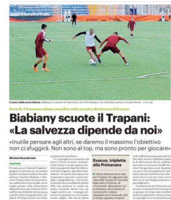 L'edizione odierna del "Giornale di Sicilia" riporta le dichiarazioni di Biabiany, l'uomo su cui i tifosi del Trapani ripongono le...