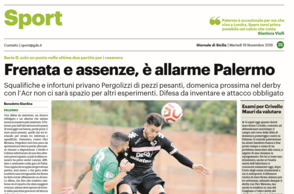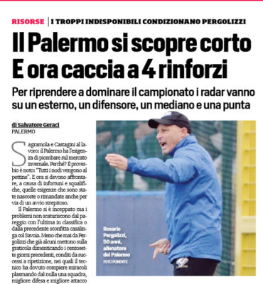 L'edizione odierna de "Il Giornale di Sicilia " ha analizzato quelle che saranno le scelte di Pergolizzi. Un allarme in...