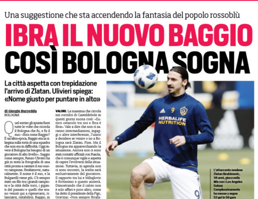 Corriere dello Sport: “Ibra il nuovo Baggio, così Bologna sogna”