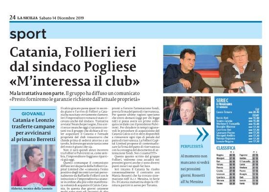 Secondo quanto evidenziato dall'edizione odierna del quotidiano "La Sicilia", l'imprenditore pugliese Raffaello Follieri, il principale indiziato per acquistare il Calcio...
