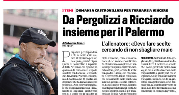 Secondo quanto riportato dall'edizione odierna della "Gazzetta dello Sport", il tecnico del Palermo Rosario Pergolizzi ha parlato della prossima gara...