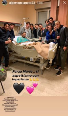 Dopo l'operazione di Mario Santana, alcuni elementi della squadra rosanero si sono recati a far visita al capitano in ospedale. Ecco l'immagine postata...