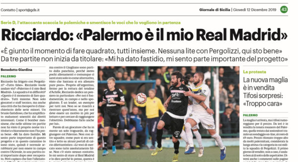 Secondo quanto riportato dall'edizione odierna del "Giornale di Sicilia", il bomber del Palermo Ricciardo è intervenuto ai microfoni parlando del...