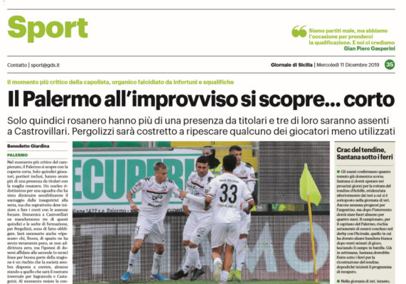 Gds: “Il Palermo all’improvviso si scopre… corto”