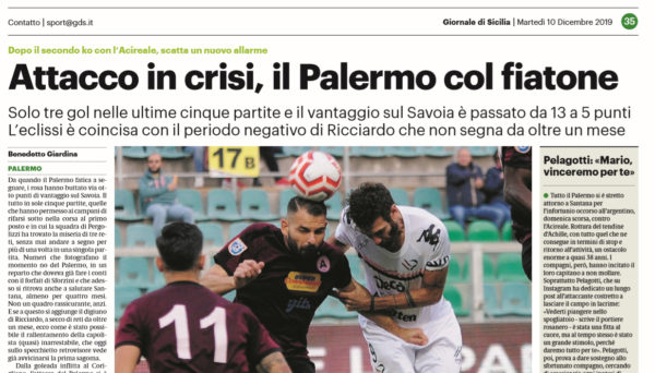 L'edizione odierna del "Giornale di Sicilia" si sofferma sulla crisi offensiva del Palermo. Da quando il Palermo fatica a segnare,...